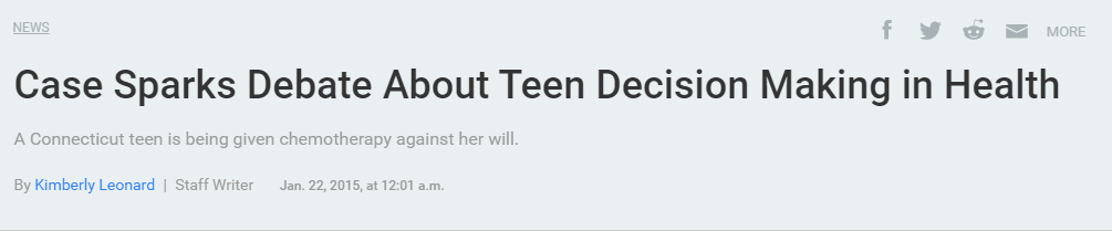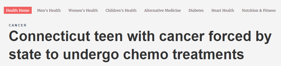 Fox News (right): http://www.foxnews.com/health/2015/01/05/connecticut-teen-with-cancer-forced-by-state-to-undergo-chemo-treatments.html?refresh=true