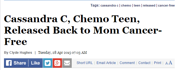 News Max (right): http://www.newsmax.com/TheWire/cassandra-c-chemo-teen-released/2015/04/28/id/641143/
