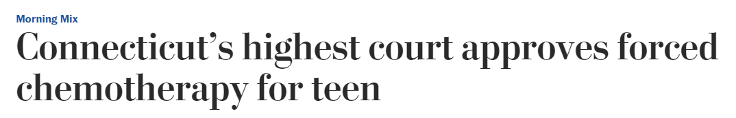 Washington Post (left): https://www.washingtonpost.com/news/morning-mix/wp/2015/01/08/connecticuts-highest-court-approves-forced-chemotherapy-for-teen/?hpid=z3